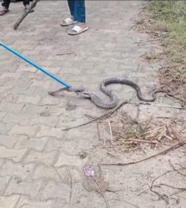 ग्रामीण पंकज सैनी,मोहित सैनी,विनय कुमार, रवि कुमार सुंदर,नीतीश कुमार ने वन विभाग को इसकी सूचना दी वन विभाग के कर्मचारीयों ने मौके पर पहुंचकर सांप को कड़ी मशक्कत के बाद रेस्क्यू जंगल में छोड़ दिया गया है।