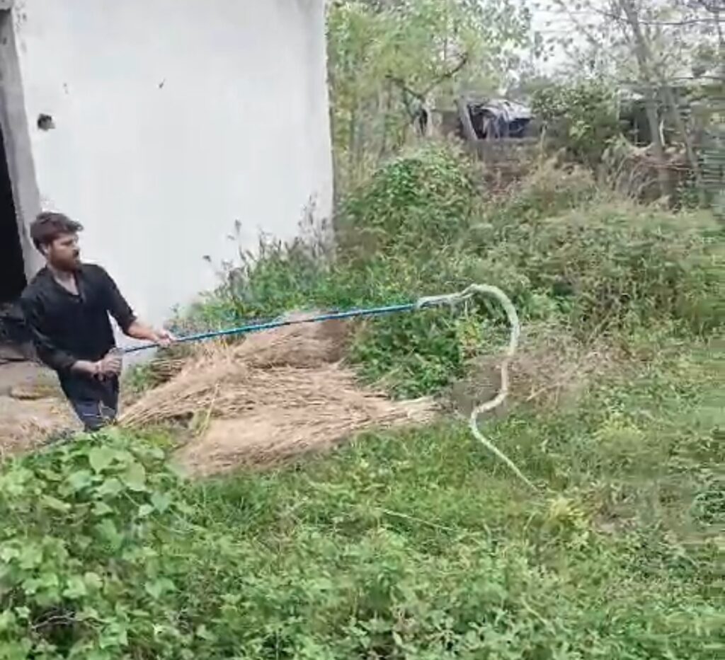 भूसे में सांप आने से बाल बाल बच्चा किसान,वन विभाग के कर्मचारीयों ने रेस्क्यू कर छोड़ा जंगल में,,,