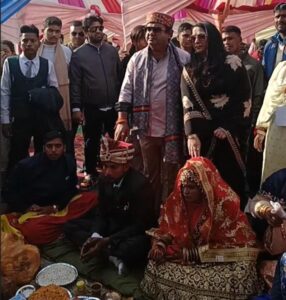 हरिद्वार । खानपुर क्षेत्र के विधायक व वरिष्ठ पत्रकार उमेश कुमार शर्मा द्वारा ऋषिकुल मैदान हरिद्वार में 121 बेटियों का सामुहिक विवाह खुशनुमा वातावरण में संपन्न हुआ,जिसमें देहरादून से लेकर हरिद्वार,खानपुर व नारसन तक के लोग अपने परिवार सहित इस विवाह समारोह में पहुंचे। लगभग-लगभग तीस हजार की भीड़ में आशीर्वाद देने के लिए यहां पहुंचे विधायक उमेश कुमार शर्मा और उनकी धर्मपत्नी सोनिया शर्मा ने तमाम वर-वधू को अपना आशीर्वाद दिया। सभी आए मेहमानों के लिए शानदार भोजन की व्यवस्था की गई थी।हरिद्वार स्थित ऋषिकुल मैदान में पचास मंडप बनाए गए जिसमें बारी-बारी से सभी हिंदू बेटियों का पुरोहितों द्वारा विवाह संपन्न कराया गया,वहीं मुस्लिम लड़कियों का निकाह ज्वालापुर स्थित मदरसे में कराया।