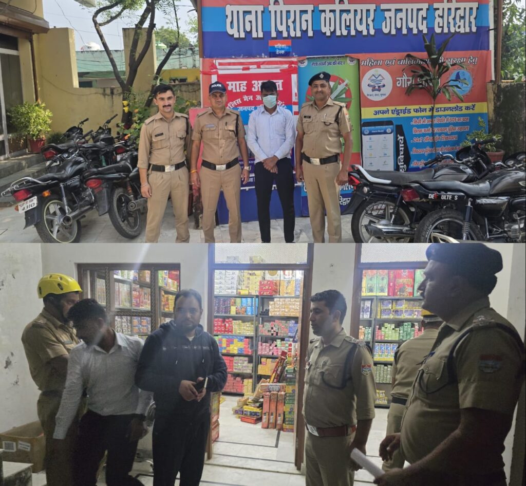 कलियर । आगामी दीपावली त्योहार को देखते हुए हरिद्वार पुलिस अवैध पटाखों के भंडारण और बिक्री के खिलाफ लगातार अभियान चला रही है। इसी क्रम में वरिष्ठ पुलिस अधीक्षक के निर्देश पर थाना पिरान कलियर पुलिस ने एक बड़ी सफलता हासिल करते हुए घनी आबादी वाले क्षेत्र से भारी मात्रा में अवैध पटाखों का भंडारण जब्त किया है। पुलिस की इस तत्परतापूर्ण कार्रवाई से क्षेत्र में एक संभावित बड़ा हादसा टल गया है।