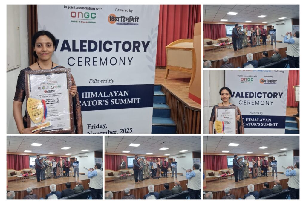 देहरादून। शिक्षा के क्षेत्र में उत्कृष्ट योगदान के लिए डॉ. ऋतु रखोलिया को प्रतिष्ठित ‘टीचर ऑफ द ईयर’ पुरस्कार से सम्मानित किया गया है। उन्हें यह सम्मान देहरादून में आयोजित छठे देहरादून इंटरनेशनल साइंस एंड टेक्नोलॉजी फेस्टिवल के दौरान प्रदान किया गया।