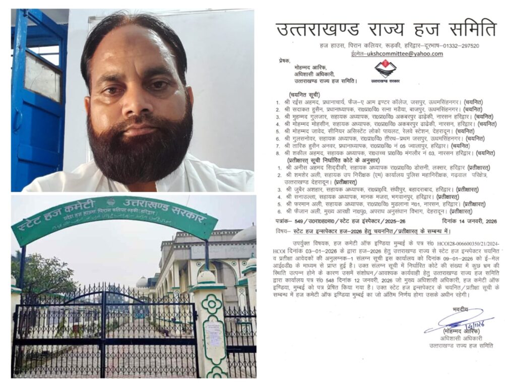 हज यात्रा 2026: हज यात्रियों की सेवा के लिए उत्तराखंड से मास्टर शकील अहमद सहित आठ सरकारी कर्मचारी चयनित, एक नाम अभी शेष,देखे लिस्ट