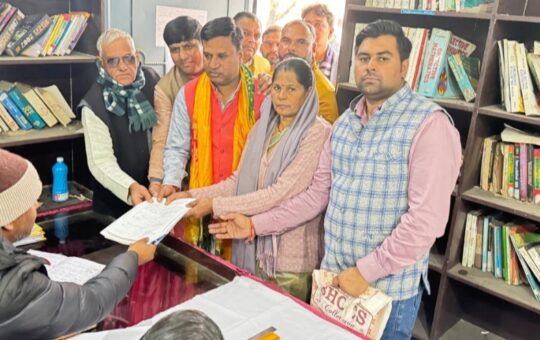 नगर पंचायत ईमली खेड़ा से भाजपा प्रत्याशी राजबाला सैनी ने दलबल के साथ किया नामांकन
