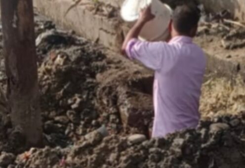 टूटे हुये पाइप को ठीक करते हुए जल संस्थान के कर्मचारी तहलका वन न्यूज़ की खबर का असर जल...