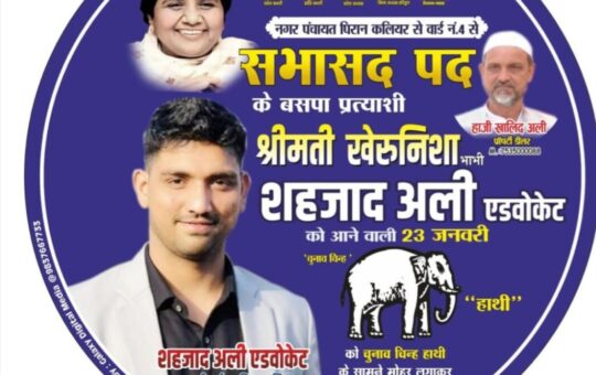 नगर पंचायत कलियर वार्ड नंबर 04 मे हाथी का कमाल कोई प्रत्याशी नहीं मुकाबला में एडवोकेट शहजादा अली व उनके...